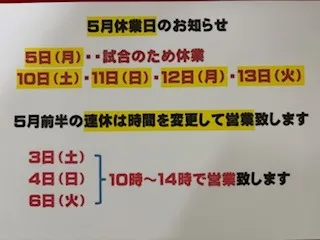 5月の営業とお休みと・・・♪